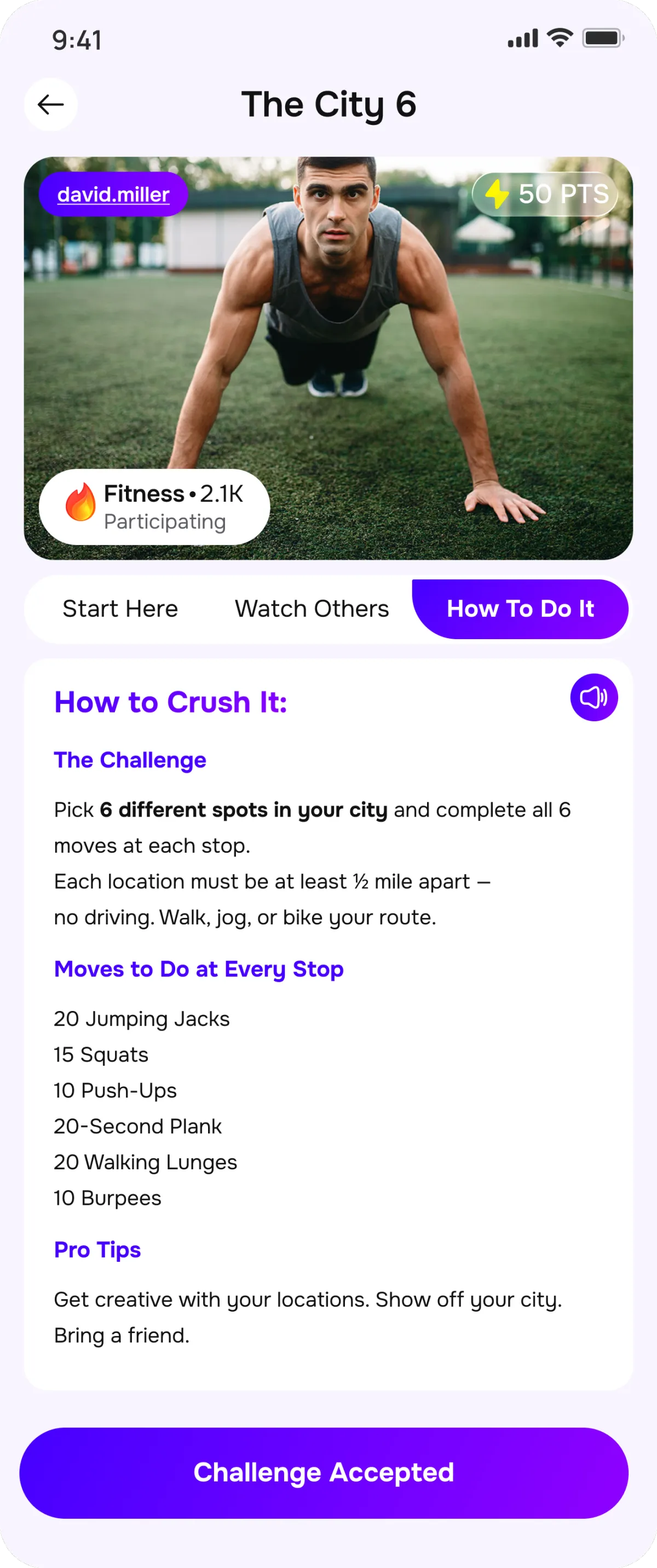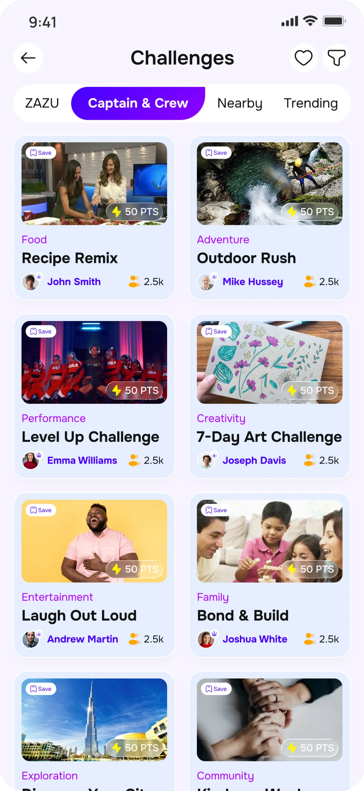 Every Zone thrives on energy across different lanes. We’re looking for creators to create challenges in their unique niches—fitness, food, adventure, local exploring, performance, team building, creativity, kids & family activities, volunteering, and more—to bring this challenge culture to life.