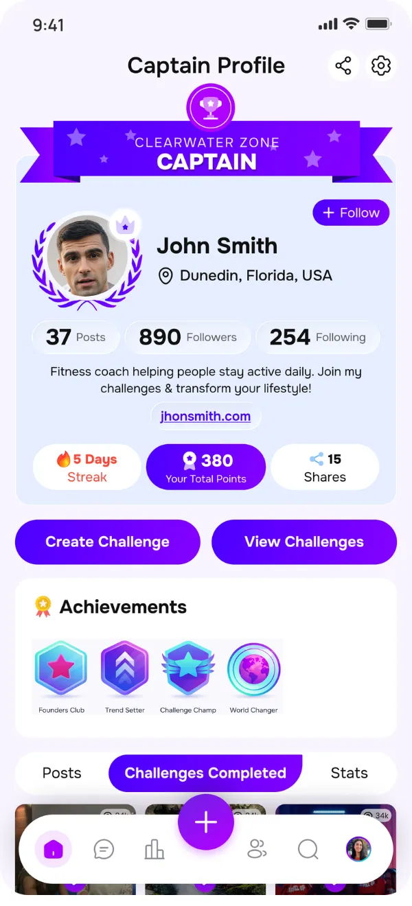 Founding Captains and Crew will be well positioned for future sponsored challenges, local partnerships, visibility, and monetization opportunities as the league expands.